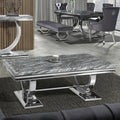 Ultra chic and high end, the ultimate collection for those who crave style and glamour. Its unique marble top is supported by a polished stainless steel double circular base.