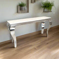 The Plush-DT-02 white and chrome console table is a contemporary modern version of a traditional Plush-DT-02 table. Supported by curvaceous legs an elegant element is introduced whilst the combination of sleek white glass and polished stainless steel keep the Plush-DT-02 console table on trend with a modern look.