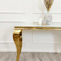 The Plush-CNT-02 Gold Console Table with Glass Top Glass & Gold Console Table is a brand new addition to our occasional table range. Featuring a marble top and gold base, this contemporary lamp table would make a stunning addition to any modern home.
