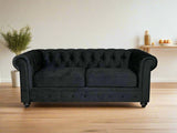 Give your living space a makeover and introduce a glam feel with this upholstered set that includes a 3 seater and a 2 seater. Its chic design influenced by Chesterfield form combined with a tuxedo sofa style fits any modern as well as traditional home décor. Tailored in high-quality beige fabric, the sofas come with stainless steel legs, thick seat cushions for high sitting comfort and accent button-tufting on the outline.