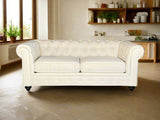 Give your living space a makeover and introduce a glam feel with this upholstered set that includes a 3 seater and a 2 seater. Its chic design influenced by Chesterfield form combined with a tuxedo sofa style fits any modern as well as traditional home décor. Tailored in high-quality beige fabric, the sofas come with stainless steel legs, thick seat cushions for high sitting comfort and accent button-tufting on the outline.