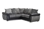 New Kaya Corner Sofa produced in Graceland (Velour) fabric, available in light grey or dark grey colour. Scatter back cushions come with the sofa as seen on the picture. Modern chrome legs. Fabric fire retardant and complies with UK Fire Regulations.
